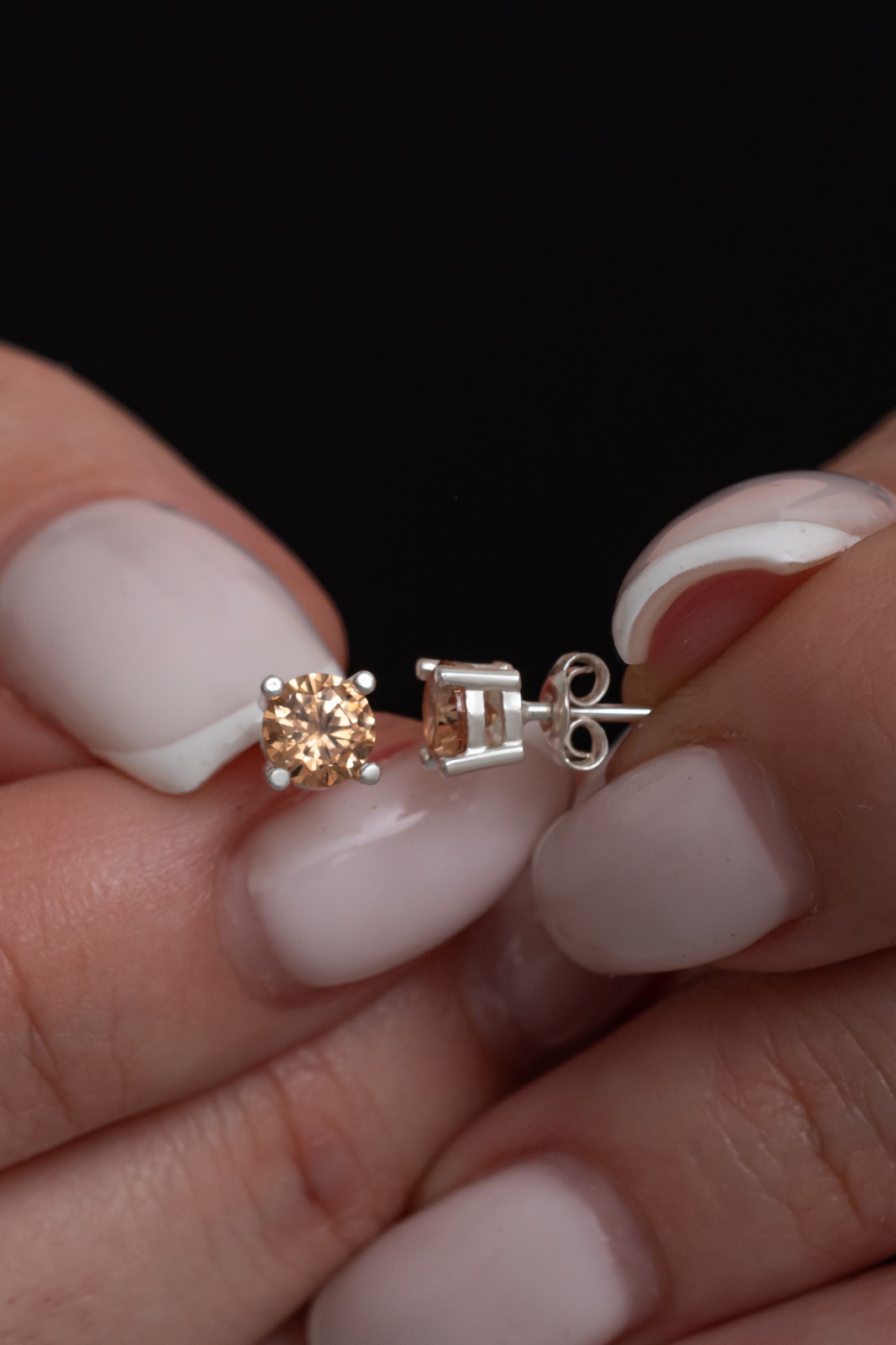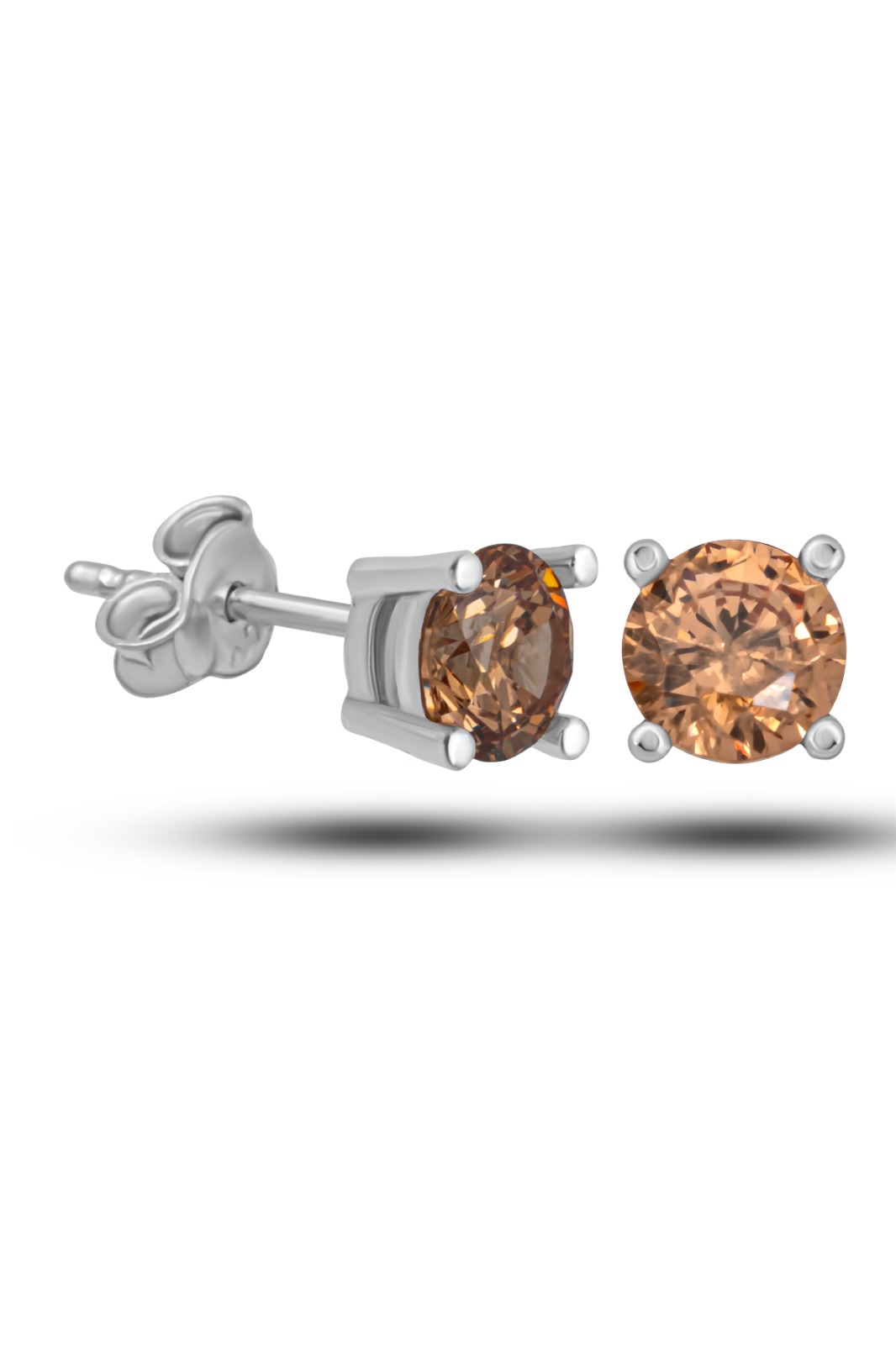 925 AYAR 6 MİLİM KAHVE RENGİ TEK TAŞ GÜMÜŞ KÜPE