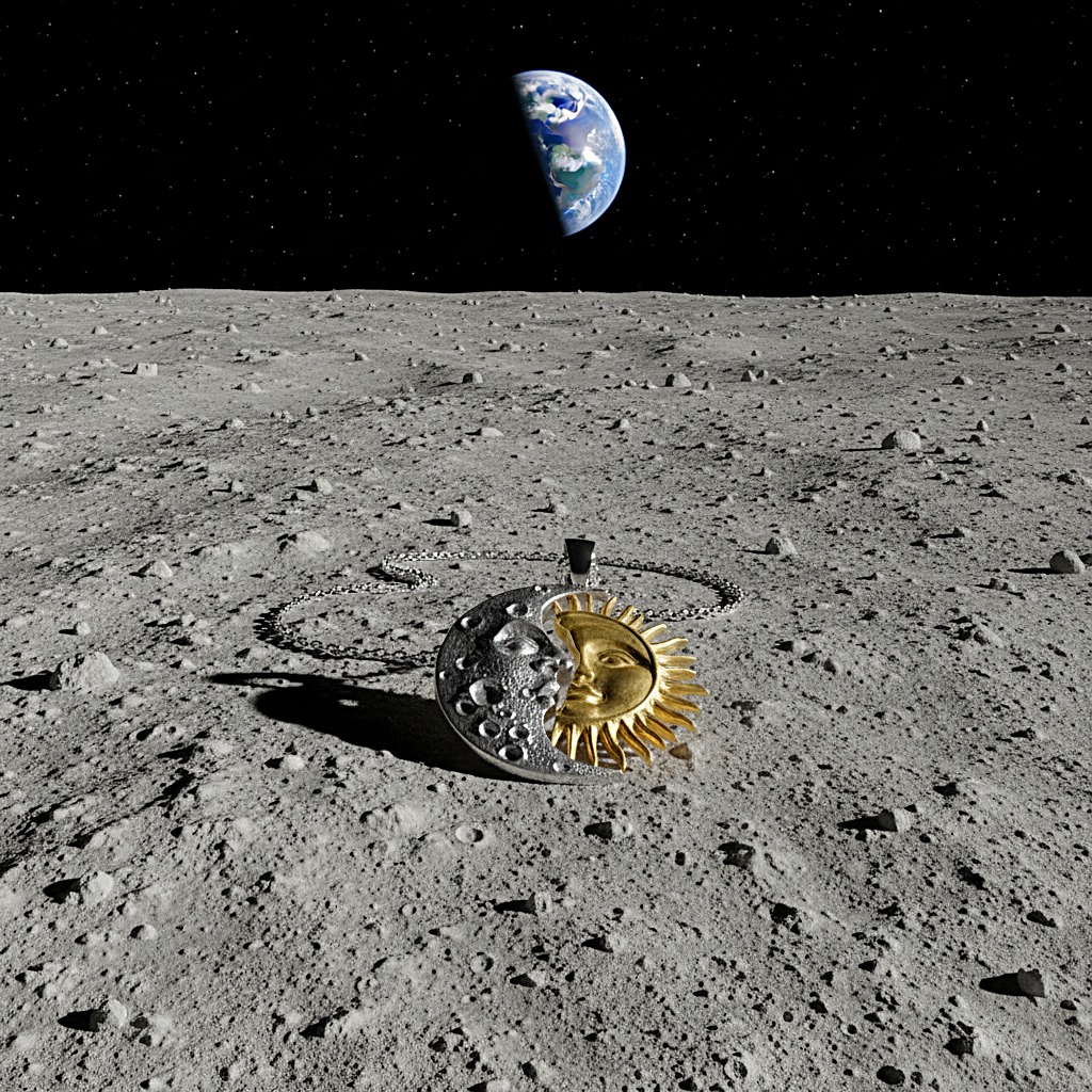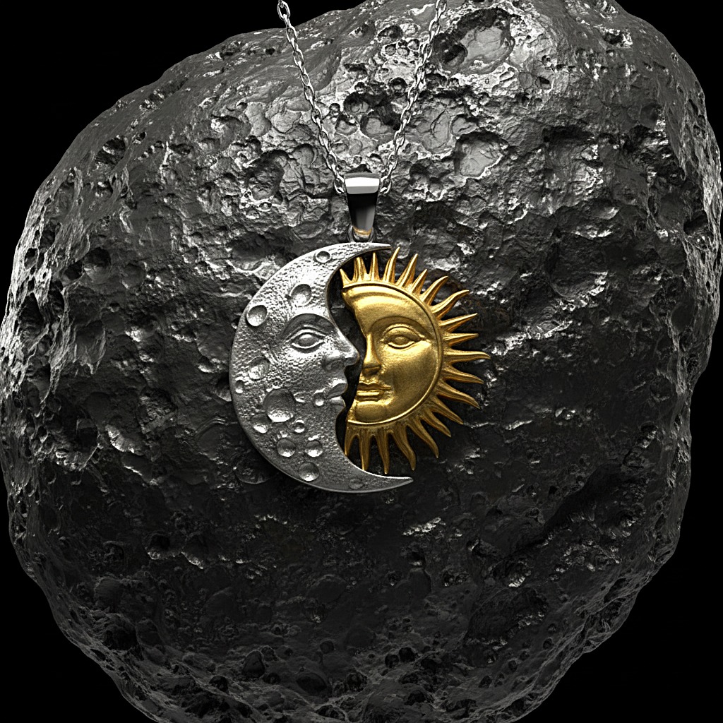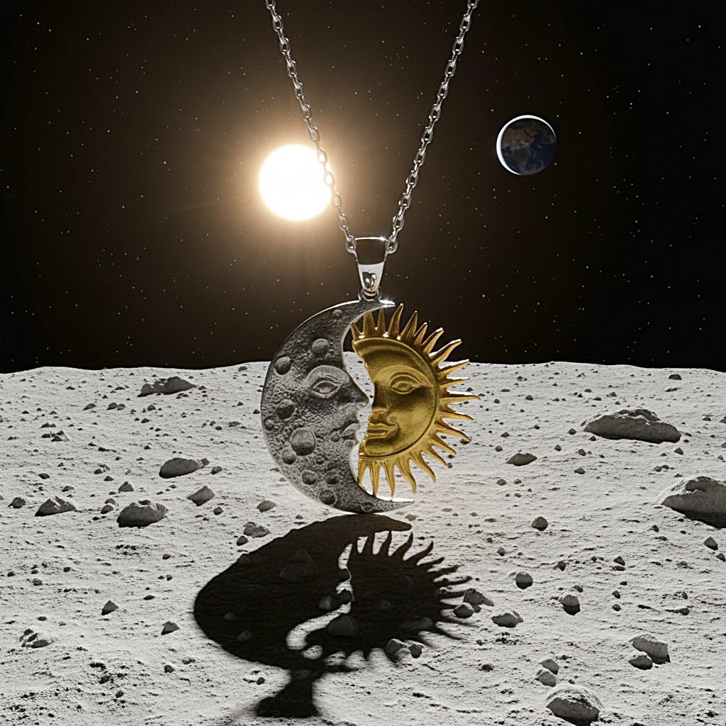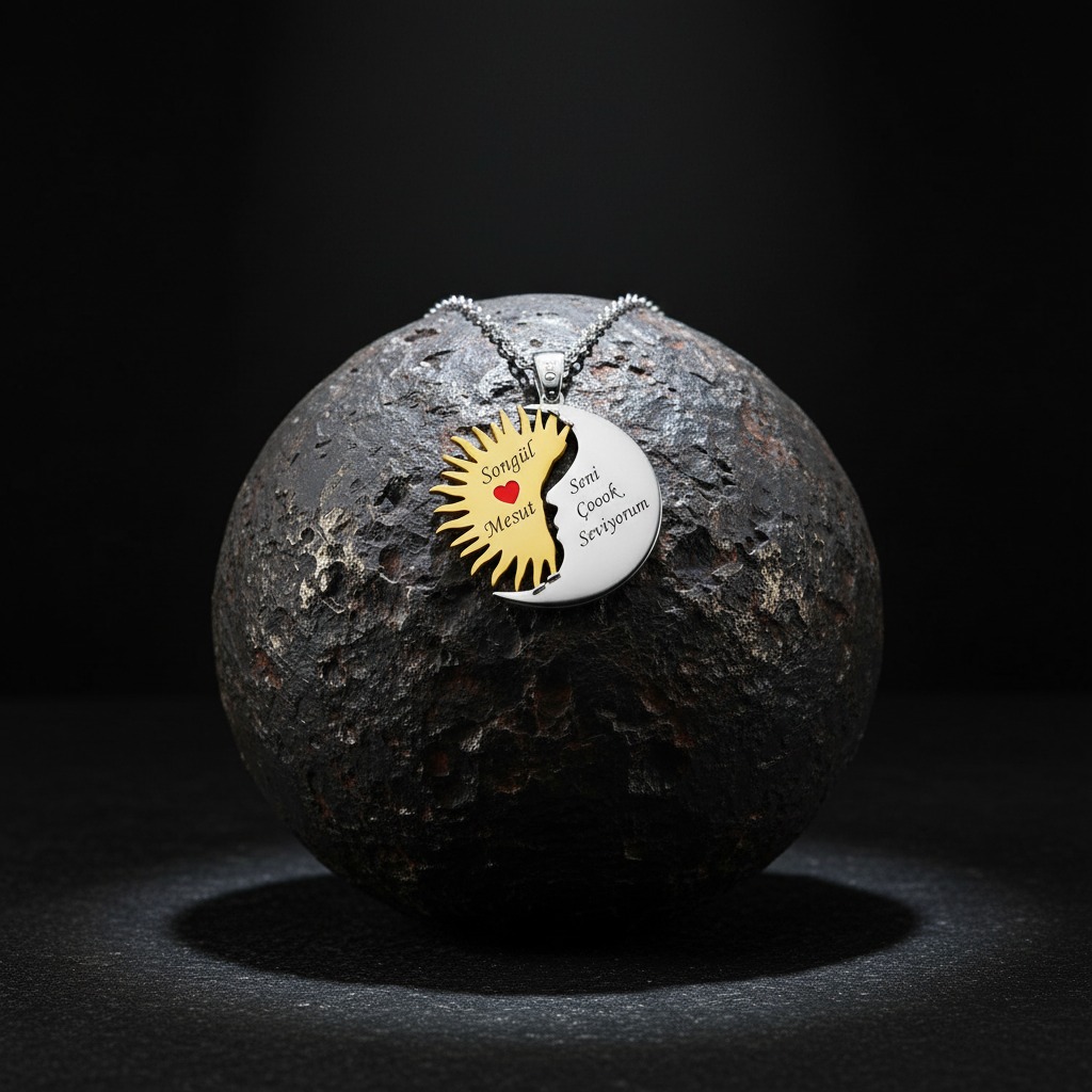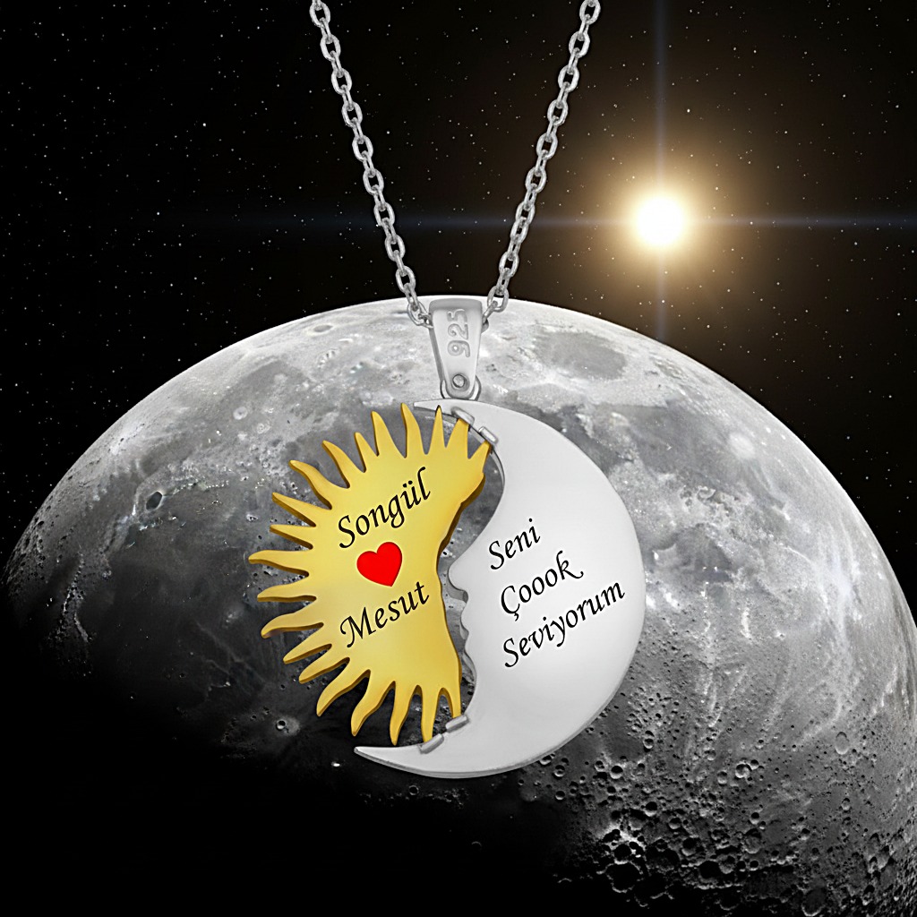 “Göklerin Aşkı: Ay ve Güneş Kolyesi” Yüzyıllar önce, Ay ve Güneş birbirine âşık olmuştu.; Fakat kader, onları aynı gökyüzünde buluşturmuyordu.; Ay geceye, Güneş gündüze aitti.; Her biri diğerini görebilmek için ufuk çizgisini gözler, her doğuşta ve batışta kalpleri titrerdi.; Bazen tutulmalarda kısa bir kavuşma yaşanır, gökyüzü bu vuslata tanıklık ederdi.; Bu efsane, “Ay ve Güneş Kolyesi”nde yeniden hayat buldu.; İç içe geçmiş iki sembol: biri zarafeti, sezgiyi ve gecenin bilgeliğini temsil eden Ay; diğeri gücü, cesareti ve yaşam kaynağını simgeleyen Güneş.; Her kolye, evrenin dengesini ve tamamlayıcı aşkı simgeleyen bu kutsal birliktelikten ilham alır.; Bu kolye, sadece bir takı değil; taşıyan kişiye dengeyi, uyumu ve koruyucu bir enerji alanını hatırlatır.; Sevdiğinizle birlikte birer parça olarak taşıyabileceğiniz, ya da kendi içsel dengenizi temsil etmesi için yalnızca size ait olabilecek özel bir semboldür.; AY VE GÜNEŞ BOYUTU 1 TL BÜYÜKLÜĞÜNDEDİR.; ZİNCİR UZUNLUĞU 42+5 CM UZUNLUĞUNDADIR.;