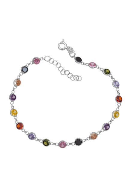 925 AYAR SU YOLU ŞIK VE IŞILTILI MİKS RENKLİ TAŞLI GÜMÜŞ BİLEKLİK ALTIN KAPLAMALI