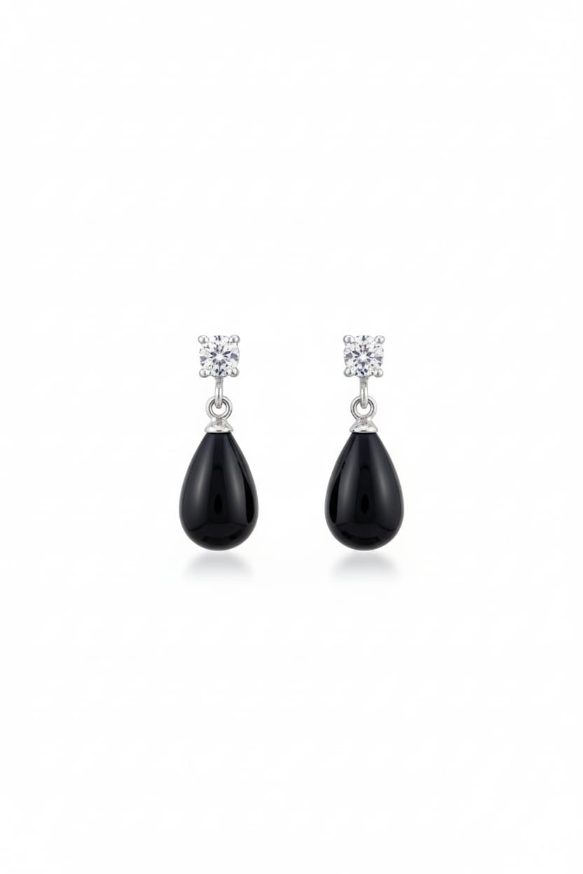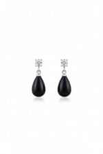925 Ayar ışıltılı tektaş sallantılı siyah gümüş inci küpe