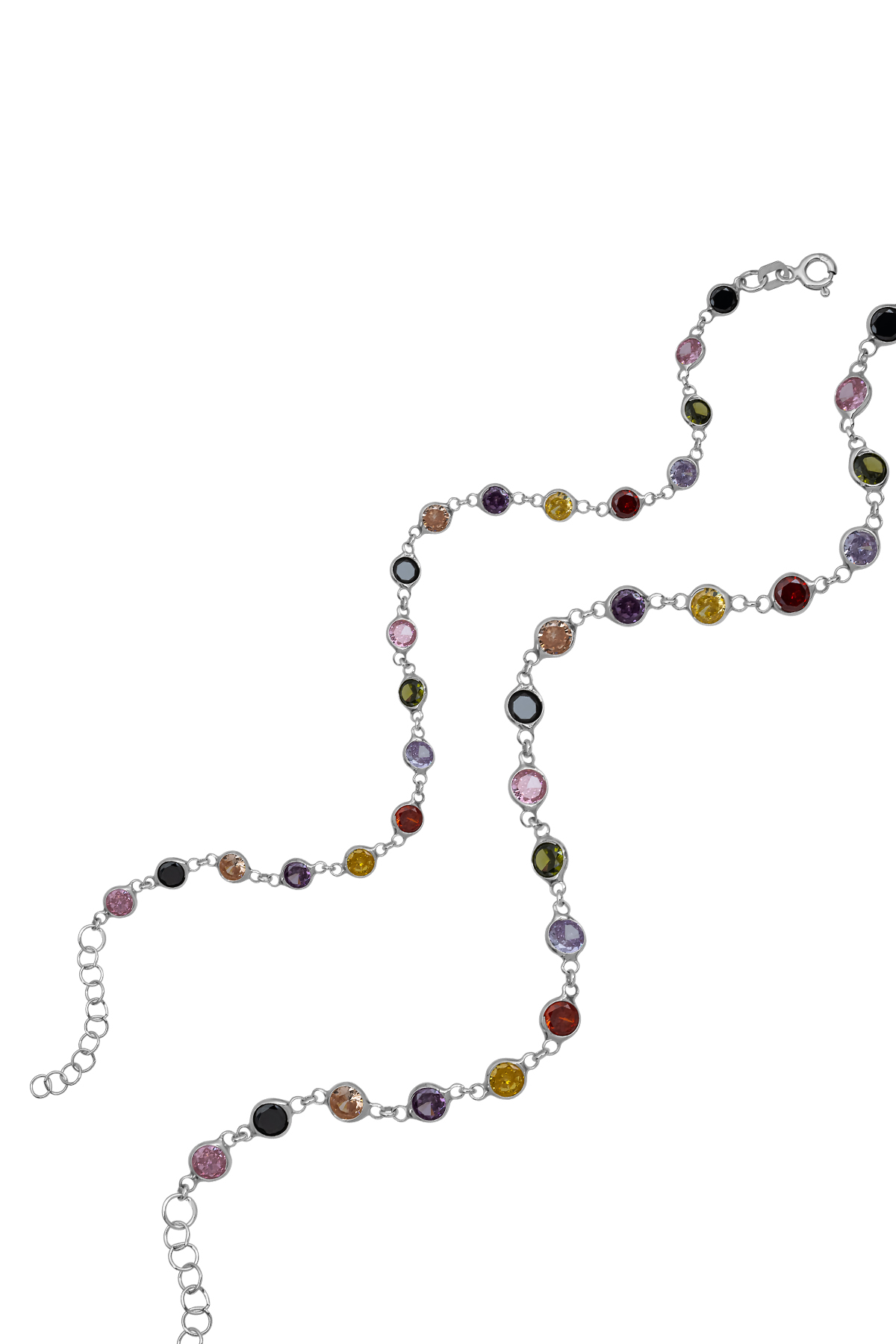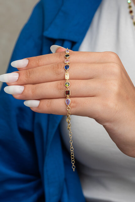 925 AYAR SU YOLU ŞIK VE IŞILTILI MİKS RENKLİ TAŞLI GÜMÜŞ BİLEKLİK ALTIN KAPLAMALI